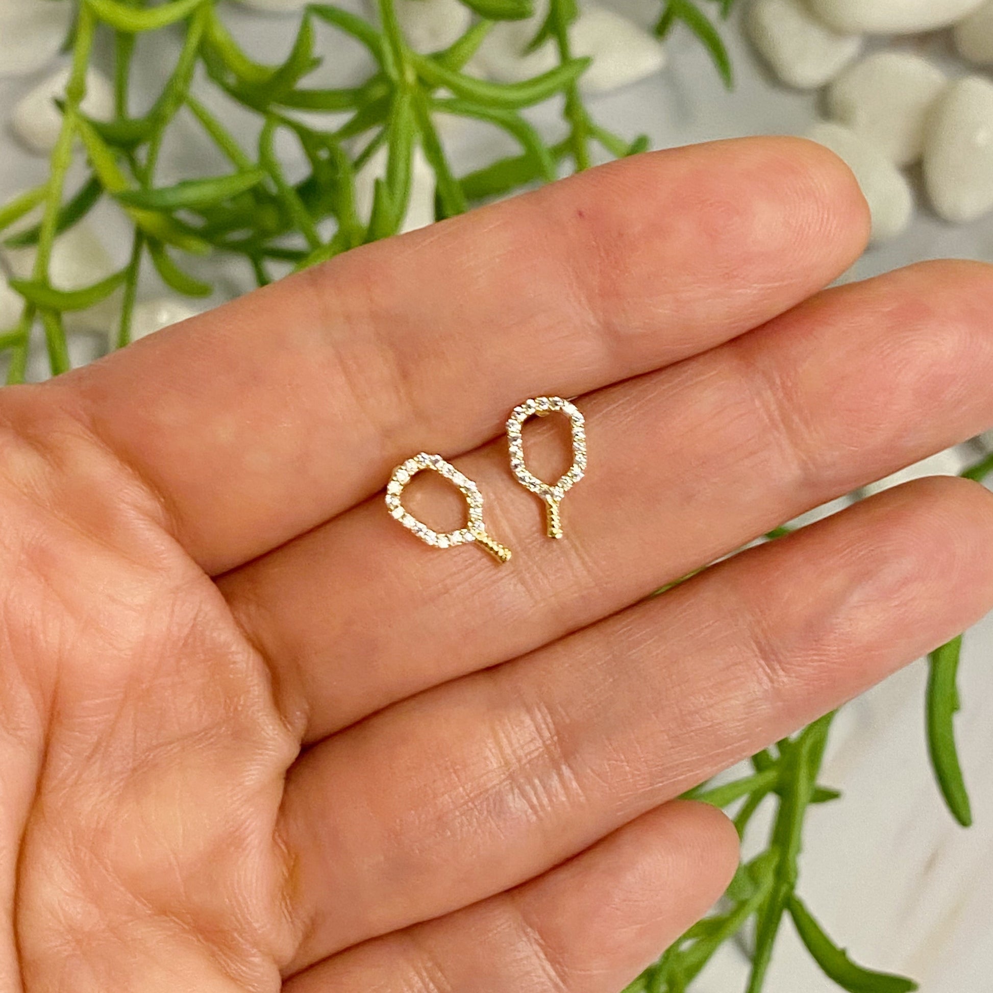 Add a touch of style to your game with our Club Pickleball Earrings, perfect for any pickleball enthusiast. Expertly crafted with a delicate pickleball racket outline, these lightweight and elegant earrings make a subtle yet stylish statement. Their small, simple design compliments any outfit, making them a must-have accessory for pickleball fans.